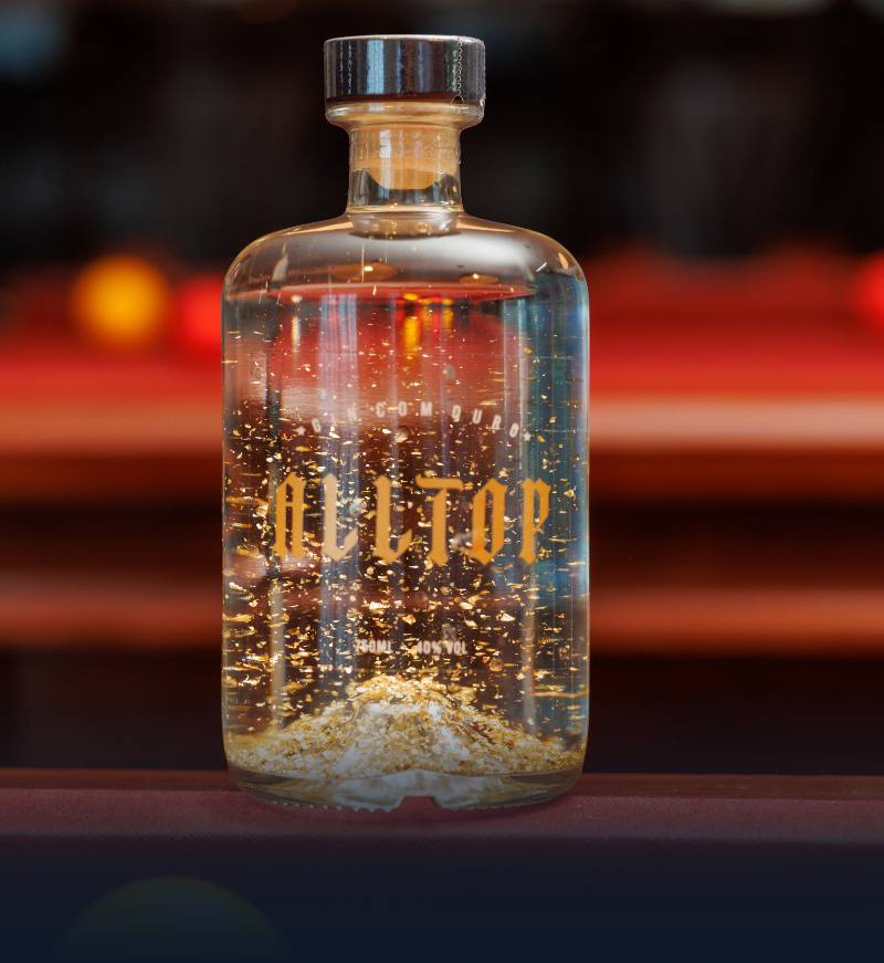 E o que torna o AllTop Gin ainda mais especial é a adição de flocos de ouro de 24 quilates consumíveis em cada garrafa de 750ml.